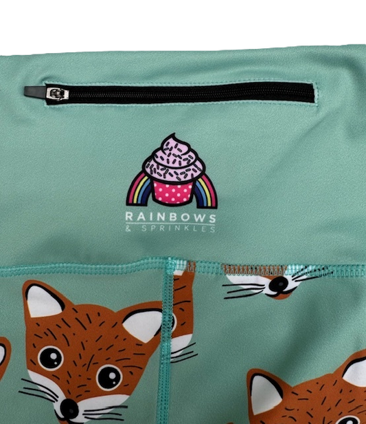 Last Chance - Fox Faces Women Activewear Leggings - Waistband Pocket - Tall 33" Legging Length