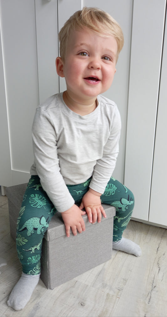 Dino & Monstera Leaf Children's Cotton Jersey Leggings