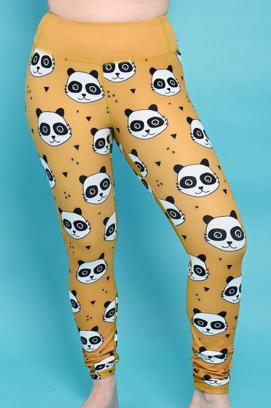 Last Chance - Mustard Panda Women's Activewear Leggings - Size 4-6 - Waistband Pocket - Tall 33" Legging Length