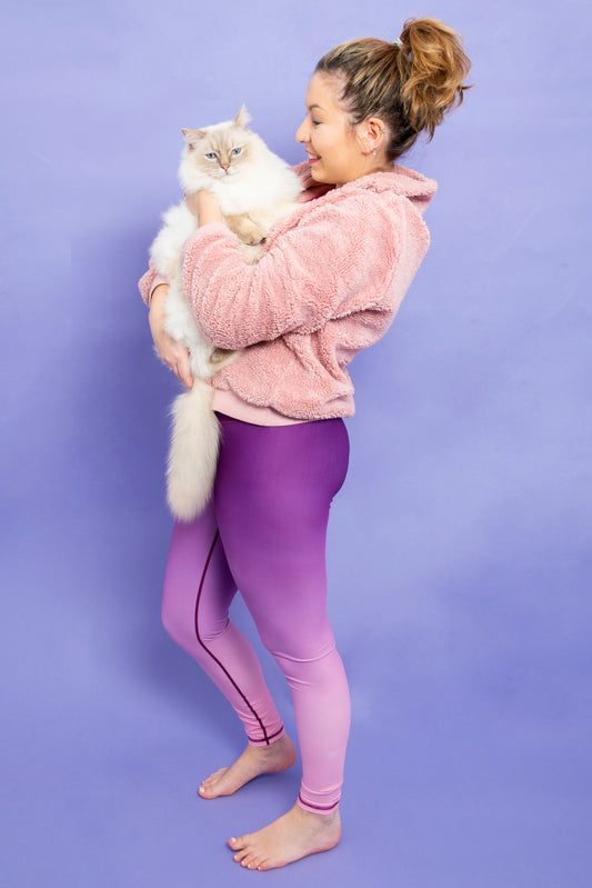 Last Chance - Purple/Pink Ombre Women’s Activewear Leggings - Size 4-6 - Waistband Pocket - Tall 33" Legging Length